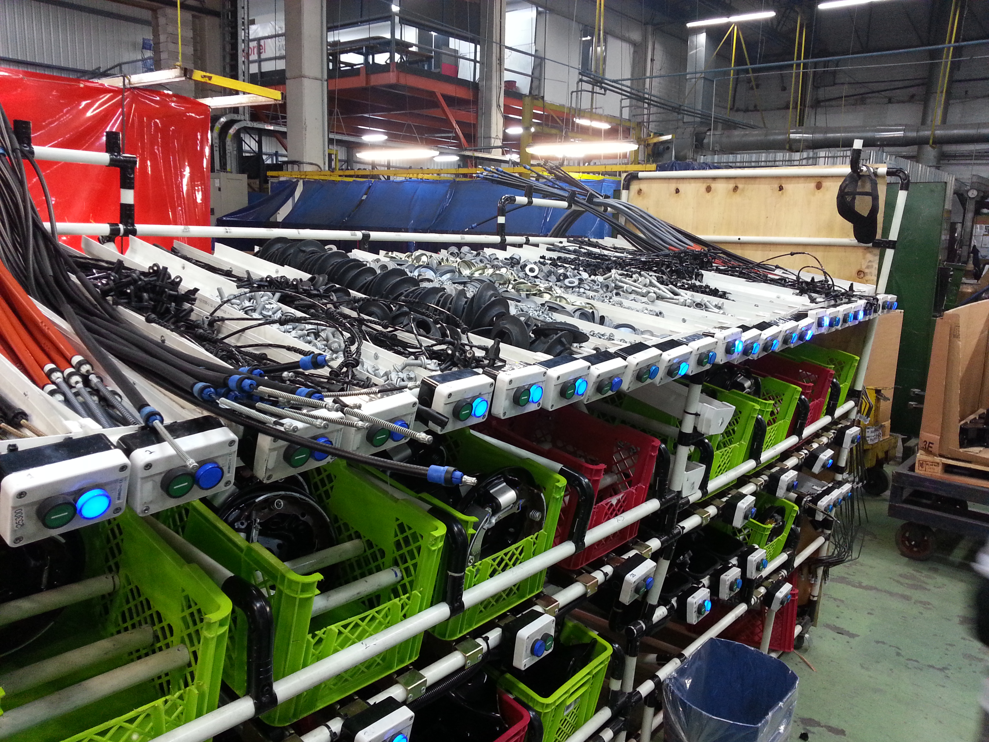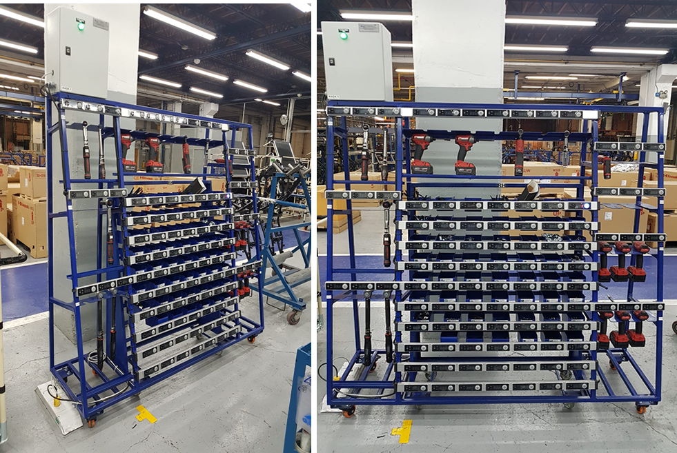 Pick to Light for rear and front axle assembly, developed with Siemens PLC and integrated with the SAP system.